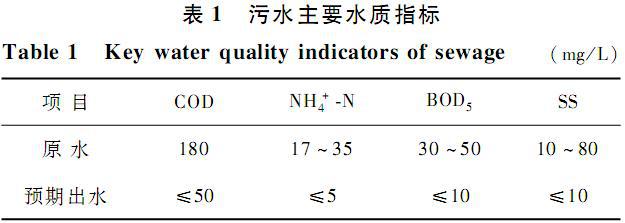 本實驗所用原水為三亞市紅沙污水處理廠的超細格柵出水,主要水質指標和預期出水指標如表1所示。